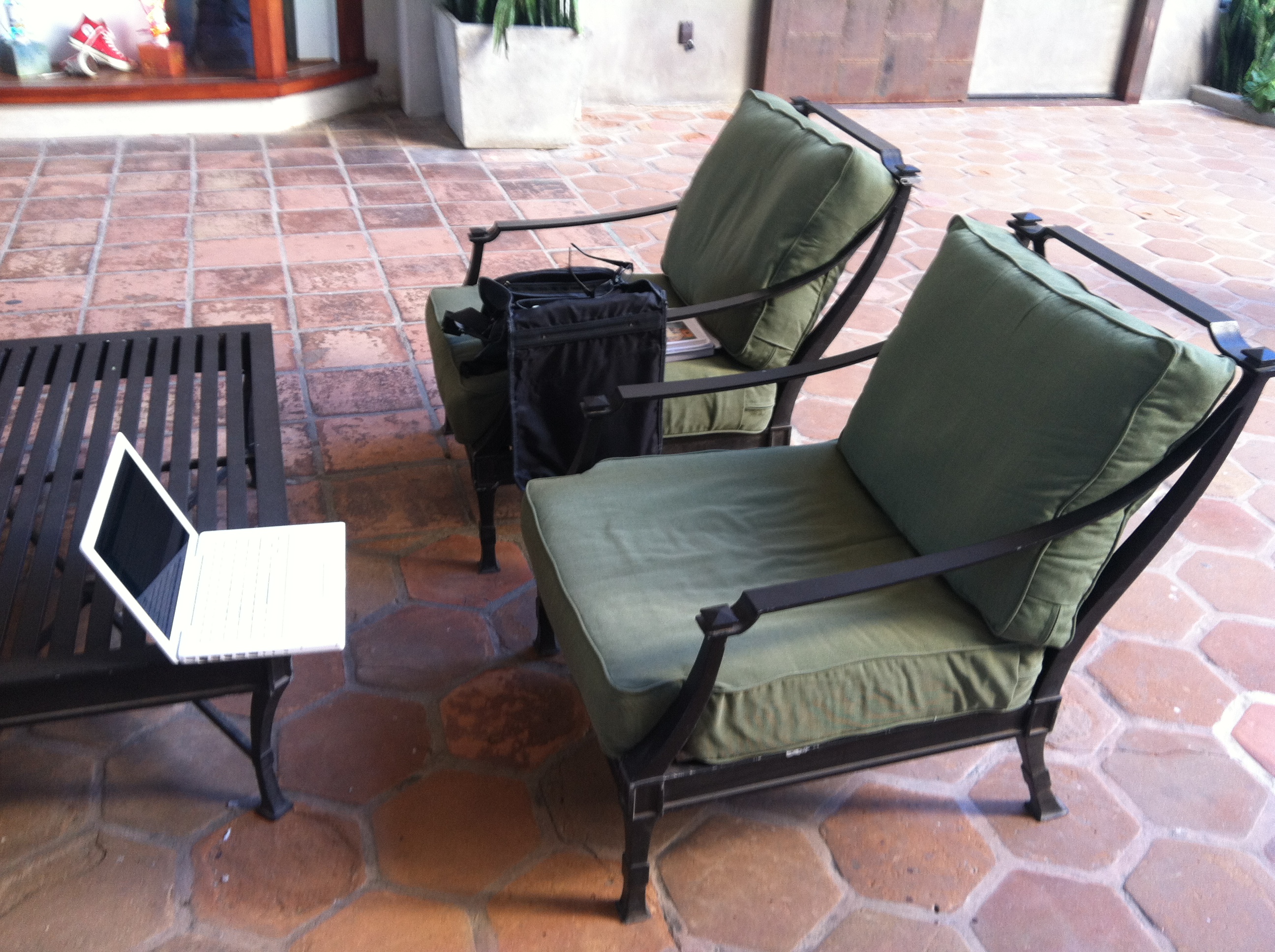 I make my way to the comfiest chair I can find in a little marketplace as transfixing as it is calming. Here I can pretend to write when really I’m just people watching and giving them the same opportunity to watch me not watching them while writing about me not watching them not watching me write about what I see in so doing…or something like that.