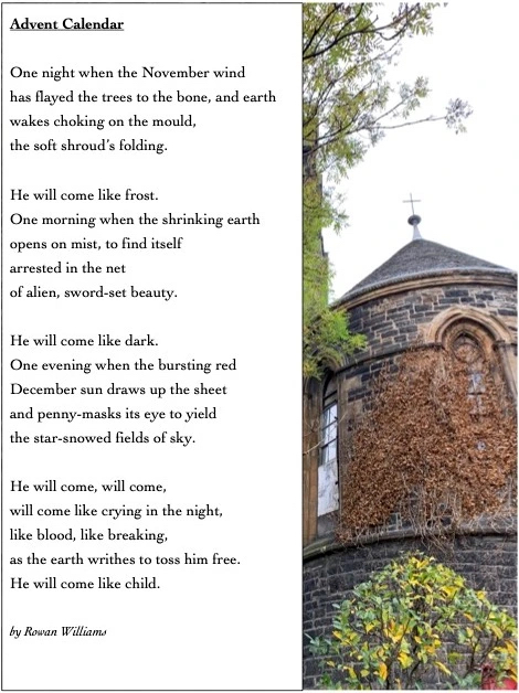 For Adventia, day 3, we are graced by the always luminous words of Welsh Anglican bishop, poet, writer, theologian, and former Archbishop of Canterbury, Rowan Williams.