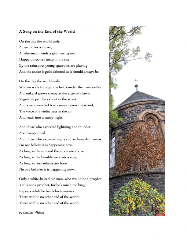 Our poem for Adventia, day 7 is by none other than the great Polish-American poet, Czesław Milosz. This was first published in Warsaw, 1944.