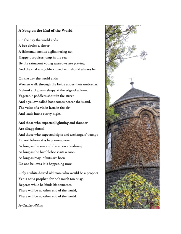 We intentionally missed a couple days. But, today I offer you this delightful poem, short but evocative, by Oliver Herford entitled, “I Heard a Bird Sing in the Dark of December.” Don’t forget to visit The Friendly Fogey where I find most of these gems.